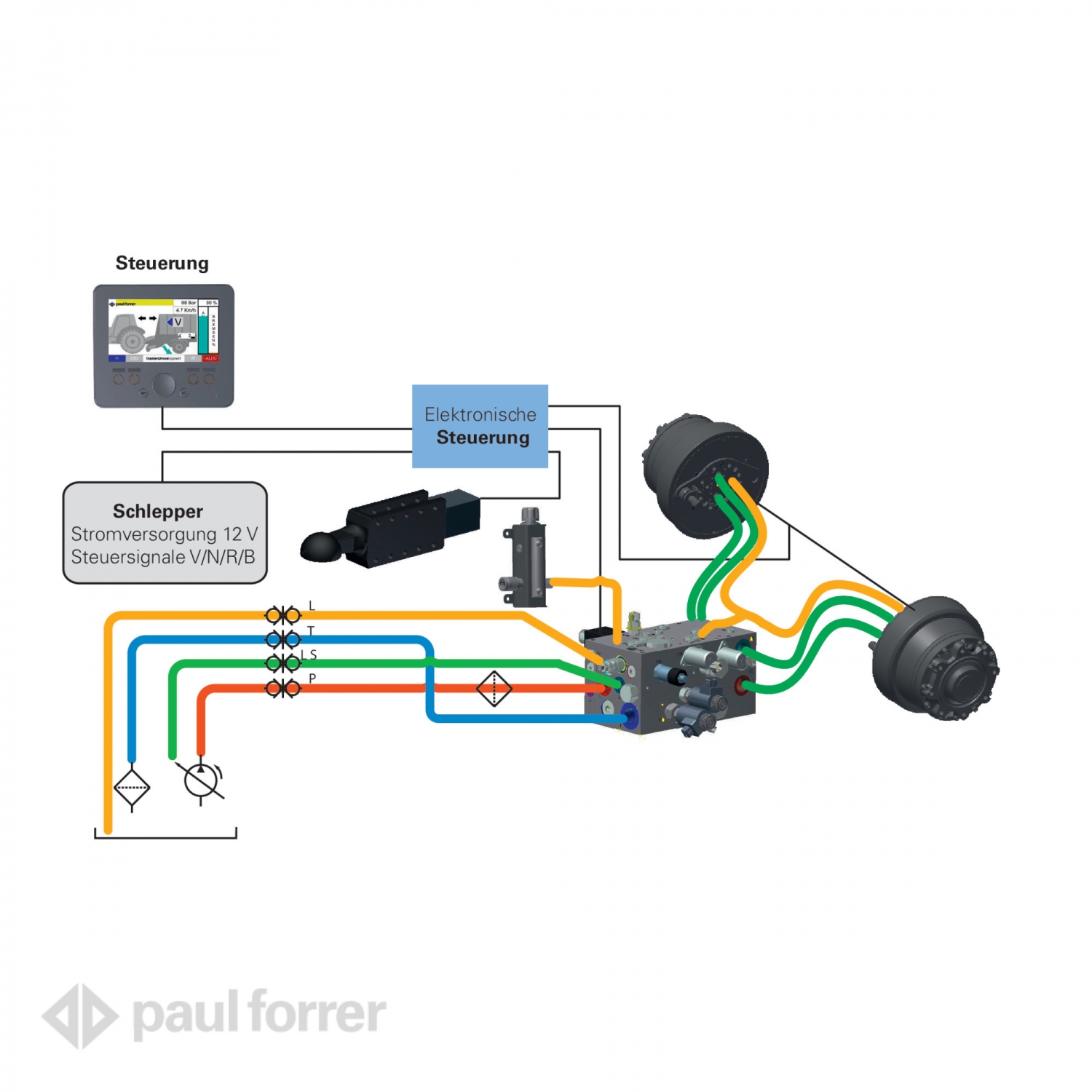 vollautomatische Regelung über Deichselsensor und Neigungssensor
